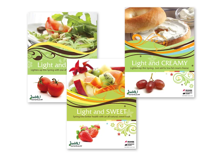 ARAMARK Innovative Dining Solutions provides expertise in consumer research, brand strategy, culinary development, facility design, retail merchandising and promotion. DWO was asked to provide ARAMARK's Foodservice clients with high quality creative in the business, healthcare and education segments.